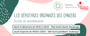 En partenariat avec la Mutualité française, la FEMAS Hauts-de-France vous propose 2 soirées de sensibilisation consacrées aux dépistages organisés des cancers: